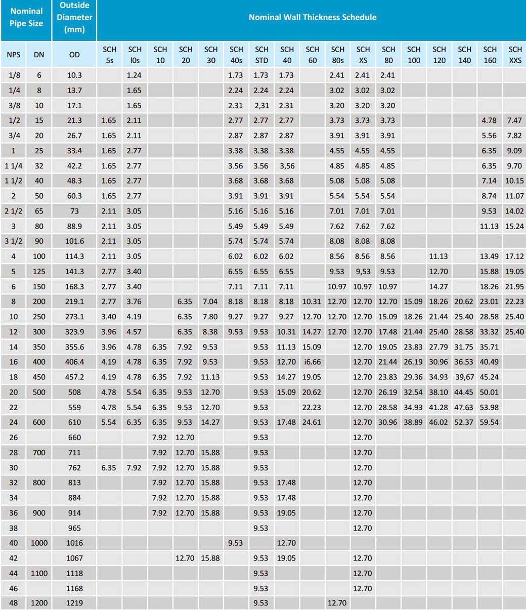 PIPE DIMENSIONS CHART
